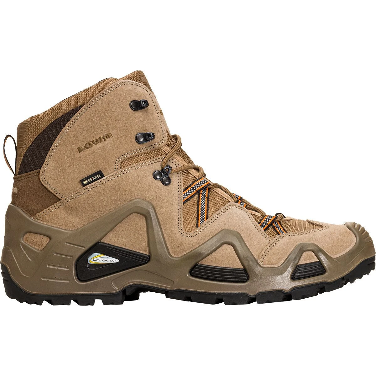 Made for military and law enforcement personnel, the Lowa Zephyr GTX is popular with hikers and backpackers who like its tactical looks and technical chops. The split leather uppers and GORE-TEX membrane offer us mid-cut ankle protection and weather protection while the firm DuraPU midsoles and PU MONOWRAP frame add stability and support for rucking, hiking, backpacking, rappelling, and parachuting out of an airplane.